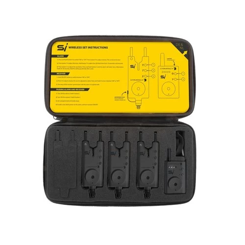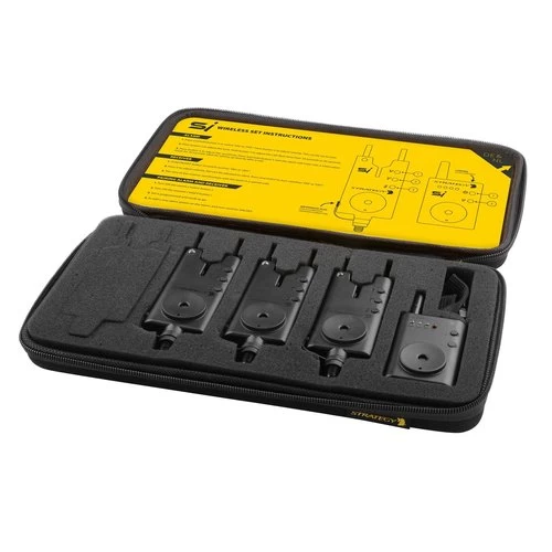 Deze nieuwe Si 3+1 draadloze set is een lust voor het oog. De Si beetmelders kenmerken zich door een uiterst slank en stijlvol design en worden geleverd in een fraaie en compacte EVA case. De geavanceerde technologie garandeert een extreem lange stand-by-tijd in combinatie met slechts 1 AAA batterij. Uitgerust met onder andere volume, toon, gevoeligheid en tal van andere instellingen, is deze nieuwe Strategy Si ook nog eens heel gebruiksvriendelijk. Iedere beetmelder is in zijn eigen individuele led-kleur los te verkrijgen, evenals de ontvanger. Dit stelt de gebruiker in staat om een set geheel naar eigen wensen samen te stellen. De beetmelders zijn voorzien van een gecodeerde frequency wat een storingsvrije functie tot gevolg heeft en een eenvoudige verbinding met de receiver tot stand brengt. De Si beetmelders zijn allen voorzien van een extra setje verwisselbare snag ears van 6cm lengte.