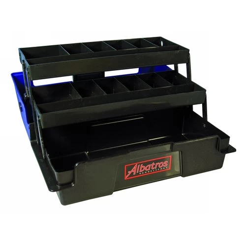 Al jaren bestsellers! De Albatros viskoffers zijn bekend bij jong en oud. Deze koffers bevatten een spatwaterdicht afsluitende deksel, ingebouwd ladesteunen, automatisch openende ladesysteem, royale opbergruimte, geen metalen delen dus geheel roestvrij en een zeer prettig in de hand liggend handvat. Voorzien van moderne frisse kleuren. Kortom, alles om uw materiaal schoon, droog en georganiseerd naar de waterkant te vervoeren.