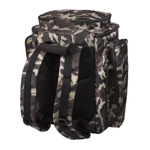 Deze Camou Rucksack 45 biedt je comfort en ruimte voor al je materiaal en accessoires. Het voorvak is ideaal om je tacklebox in te doen en aan de bovenzijde is er extra ruimte voor persoonlijke bezittingen. Daarnaast is het mogelijk om het hoofdvak van boven of via de voorkant te betreden. Wat erg handig is om vanaf de onderkant je uitrusting te pakken.