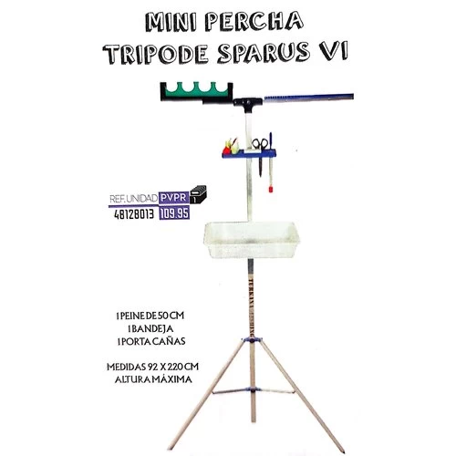 Verstelbare en makkelijk te vervoeren strandsteun met aasbak, accessoire/lood houder, onderlijnen-kam van 25 cm en 4 hengelsteunen. In hoogte te verstellen van 92 tot 220 cm.