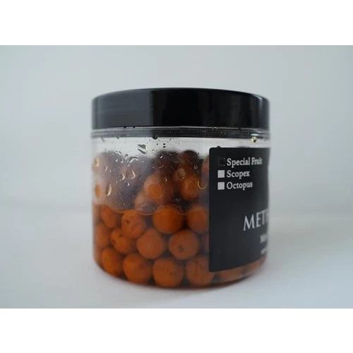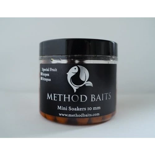 De Method Baits ‘soakers’ is ons meest unieke product uit het assortiment, een zéér onderschat haakaas. De mini voer boilies uit ons assortiment zijn geheel naar ons eigen recept gedraaid, alle vloeistoffen (olie + flavour) worden tijdens het draai proces toegevoegd aan de mix. Na elke productie laten we bewust een hoeveelheid deeg over, om de soakers van te maken. Dit deeg wordt opnieuw in de menger gegooid met wederom een stevige hoeveelheid van diezelfde vloeistoffen. Na het draaiproces worden de soakers (10 mm boilies) verpakt in potjes inclusief deze vloeistof. De mini boilies zijn dus doordrenkt met dezelfde vloeistoffen als waar ze in fase 1 mee zijn gemaakt. Door dit als haakaas te gebruiken springt net deze ene boilie er gigantisch boven uit wat betreft attractie. Een echte aanrader!