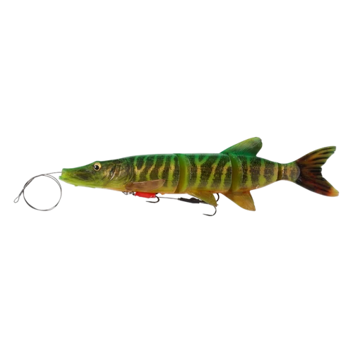 Based on a 3D Scan of a real baby pike with perfect details, Photo Chrome skin print and added DNA scent! The small jacks is in periods the favorite prey for Big pike and these super realistic lures will be deadly! The lure swims with the most realistic S-curve action, and will sink slowly on spin stop! Designed with our Brilliant Linethru design, the lure will slide up the trace away from the shredding teeth and the Pike cannot use the weight of the big lure to throw the hook.