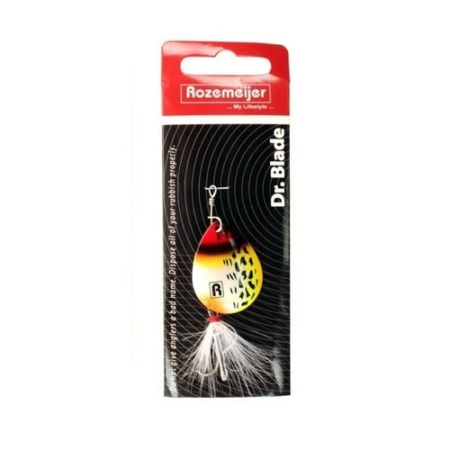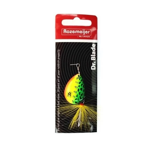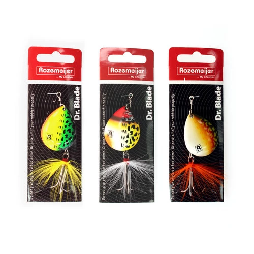 Spinners, wie is er niet mee begonnen in de polder of in zijn lokale visvijver? Spinners zijn nog steeds helemaal hot en vangen absurd veel roofvis, van baars tot snoekbaars en van snoek tot roofblei. Wij van Rozemeijer weten dat als geen ander en hebben nu deze serie spinners ontwikkeld; Dr Blade! Te verkrijgen in verschillende maten blad (#3 – #4 – #5) en in 3 schitterende kleuren: Speckled Fire Tiger (SFT) / Speckled Red Head (SRH) / Speckled Hot Pike (SHP).