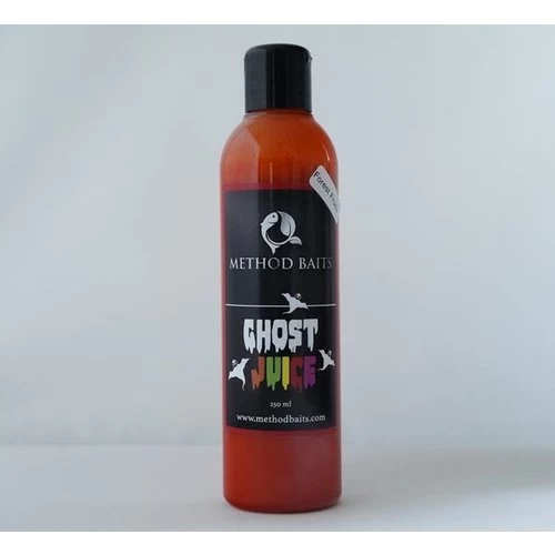De Ghost Juice zegt het al een beetje, deze ‘ghost’ vloeistof zweeft als een wolk door het water. De Ghost Juice bevat exact dezelfde flavours als de 3 mini ‘voer’ boilies uit ons assortiment. De werking is simpel maar van grote meerwaarde, in tegenstelling tot veel soortgelijke vloeistoffen op de markt heeft de Ghost Juice zowel een zinkende als stijgende werking. Met name de stijgende werking activeert de vis om naar de bodem te zwemmen. Vissen en met name karpers hebben over het hele lichaam véél smaakpapillen, deze smaakpapillen worden geprikkeld als de vis door een ‘ wolk’ van geur/smaakstoffen zwemt. De vis brengt 80% van de tijd door op half water, daarom is het van groot belang dat je door het voer gebruik maakt van stijgen vloeistoffen zoals de Ghost Juice.