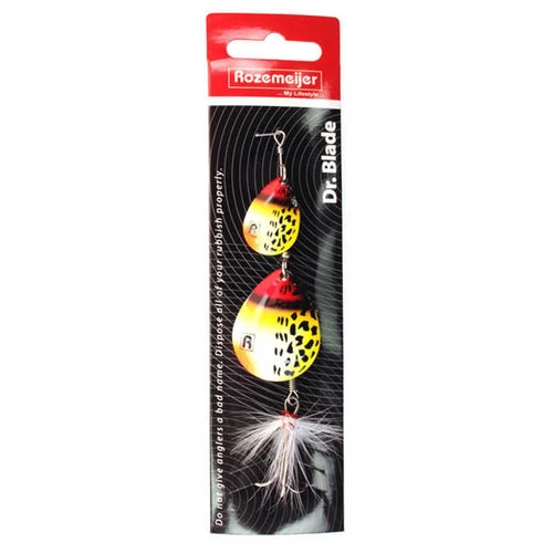 Spinners, je hebt ze met enkel blad maar soms zijn 2 bladen gewoon net even beter! In een troebele poldersloot of op een grote plas zorgt deze tandem voor veel vibratie zodat de snoek wordt getriggerd om te komen kijken. De Dr. Blade Tandem #3 & #5 heeft zich al ruimschoots bewezen, dit wordt een absolute topper! Te verkrijgen in 3 schitterende kleuren: Speckled Fire Tiger (SFT) / Speckled Red Head (SRH) / Speckled Hot Pike (SHP).