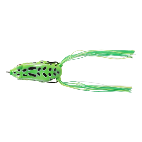 Hollow Body frogs with superb details and a realistic profile. Lively, durable Silicone Skirt legs. 2 Models, the Walk frog, that walks across the surface on retrieve and Pop Frog, that makes a deep plopping sound on the pull Both models build over an ultra sharp Double hook – with detachable single hook stinger! Superb for Bass & Pike!