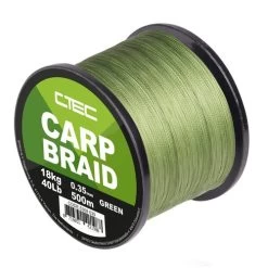 Een betrouwbare en schuurbestendige 4 braid gevlochten lijn met uitstekende prijs-kwaliteitverhouding. C-Tec Carp Braid spoelen zijn voorzien van 500 meter gevlochten lijn, wat ruim voldoende is om 2 molens mee vol te spoelen. Uitgevoerd in een camouflerende olijfgroene kleur.