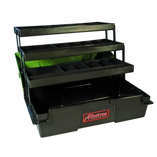 Al jaren bestsellers! De Albatros viskoffers zijn bekend bij jong en oud. Deze koffers bevatten een spatwaterdicht afsluitende deksel, ingebouwd ladesteunen, automatisch openende ladesysteem, royale opbergruimte, geen metalen delen dus geheel roestvrij en een zeer prettig in de hand liggend handvat. Voorzien van moderne frisse kleuren. Kortom, alles om uw materiaal schoon, droog en georganiseerd naar de waterkant te vervoeren.