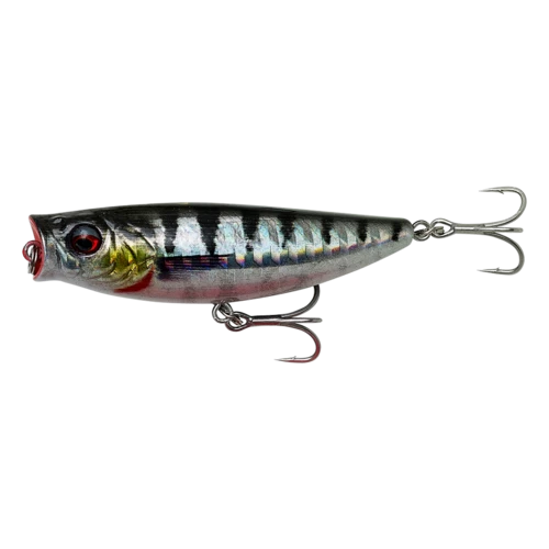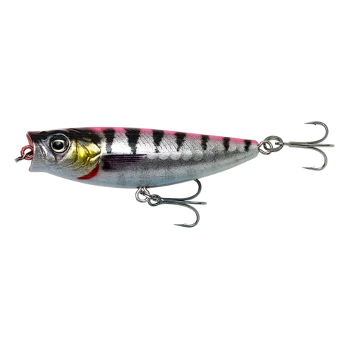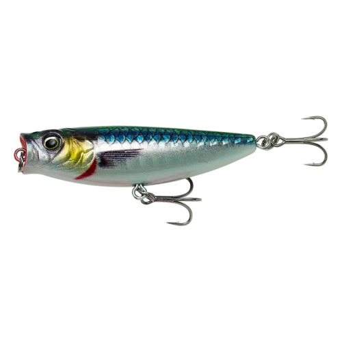 Based on a 3D Scan odf a baby sardine. The lure is not a popper, it is not a walker, it is both! The perfect “Hybrid” of a popping and a walk the dog lure. The Pop walker can perform a perfect WTD action or it can pop if the angler simply pulls It with the rod tip down! With the rod tip a bit higher, the Pop Walker “walks” with popping and splashing action. A great light game all species topwater lure with great casting distance!Fishing methods: With slow twitch while retrieve, this lure will perform a wide and slow WTD action, and with fast twitch will perform fast and sharp walk the dog action. With longer pulls and rod tip down this lure have a great popping action.