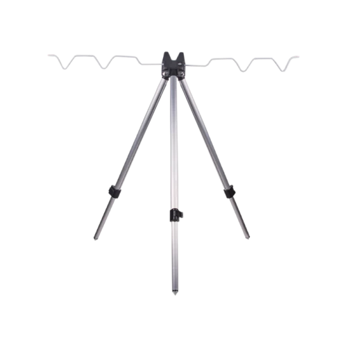 A foldable and lightweight tripod with telescopic legs, allowing you to set the pod up straight, even on uneven terrain. Suitable for four rods.
