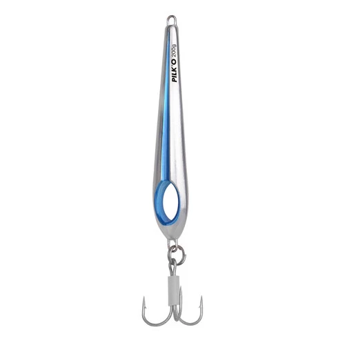 Onze nieuwste pilker is super innovatief, 15 graden gebogen en een UV-actief oog. De buiging van de pilker zorgt voor een onvoorspelbare kantelende actie tijdens het afzinken, onweerstaanbaar voor actieve zoute rovers. Het oog en de zijlijn zijn gecoat met een UV-actieve verf, met als resultaat een prachtige target voor menig rover. Elke pilker is uitgerust met onze unieke UV-hit-point tube op de haakbocht.