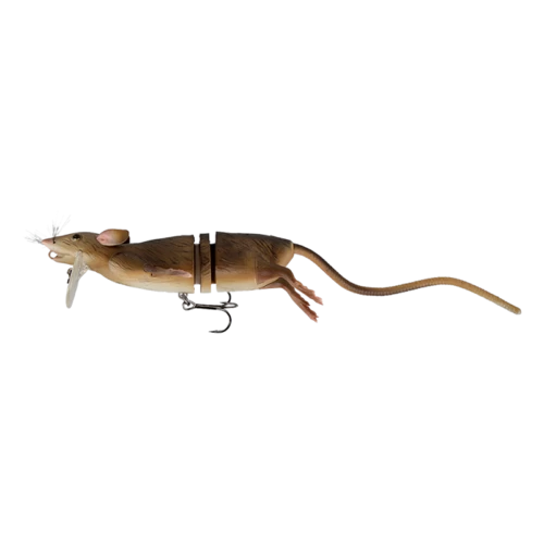 This 3D rat imitation is so radical – we just had to call it the “Rad” it’s loaded with innovative features, the 3D Scanned details will fool even the most vary predator fish and ensure you brutal attacks. Hard ultra-strong ABS body, Nylon Mesh joint with soft ears feet and tail. Attach the lure on the Bill / lip and fish on the top, like a Rat swimming with a big waking and sub surface rolling S-curve action. Attach the lure in the Nose and it will dive down and swim super realistic under the surface – make a spinstop and the lure will pop straight up to the top, with it’s high buoyancy – a brilliant way to really provoke crazy strikes. The Large size, can be fished through weedy and snaggy areas with a stinger and treble hook clipped on the back. The Soft Ears, feet and tail, truly set a new standard for a rat imitation lure. The tail is reinforced with a braid core and clips on to the body with an innovative and smart clip design – that make it easy changeable. Superb lure for Pike, Bass, Musky and big brutal Catfish!